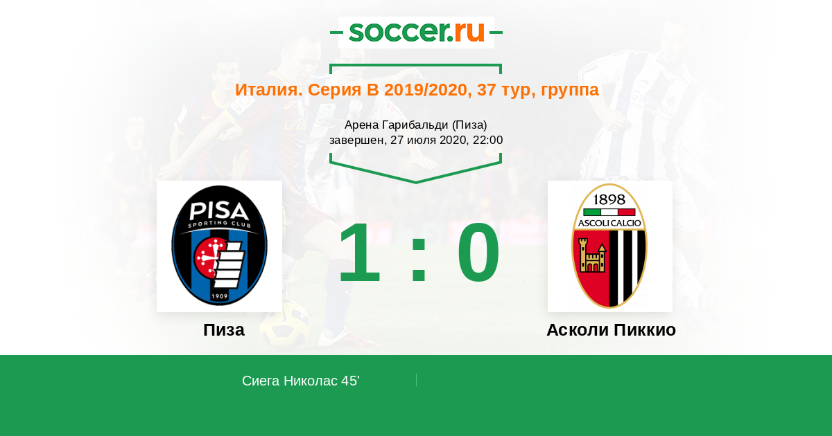 Протокол матча Пиза против Асколи Пиккио