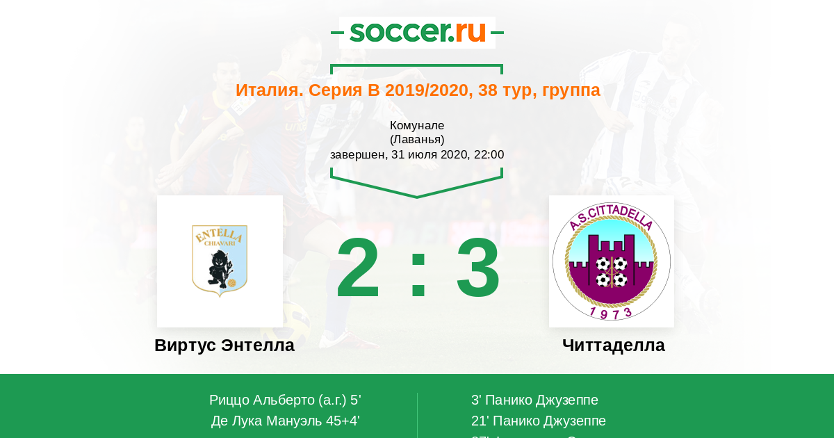Протокол матча Виртус Энтелла против Читтаделла