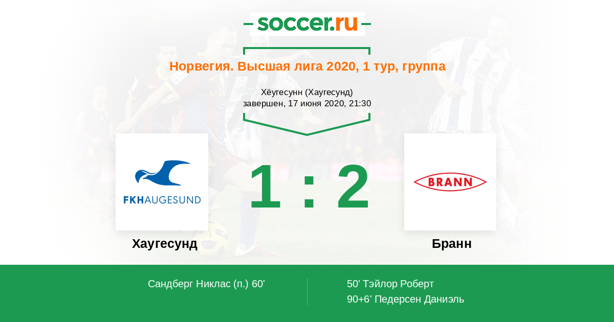 90+6' (1:2) Педерсен Даниэль (23) (Хауген Фредрик (8))
