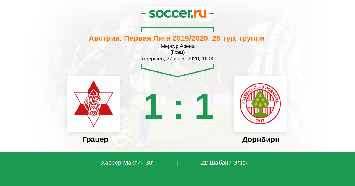 Протокол матча Грацер против Дорнбирн