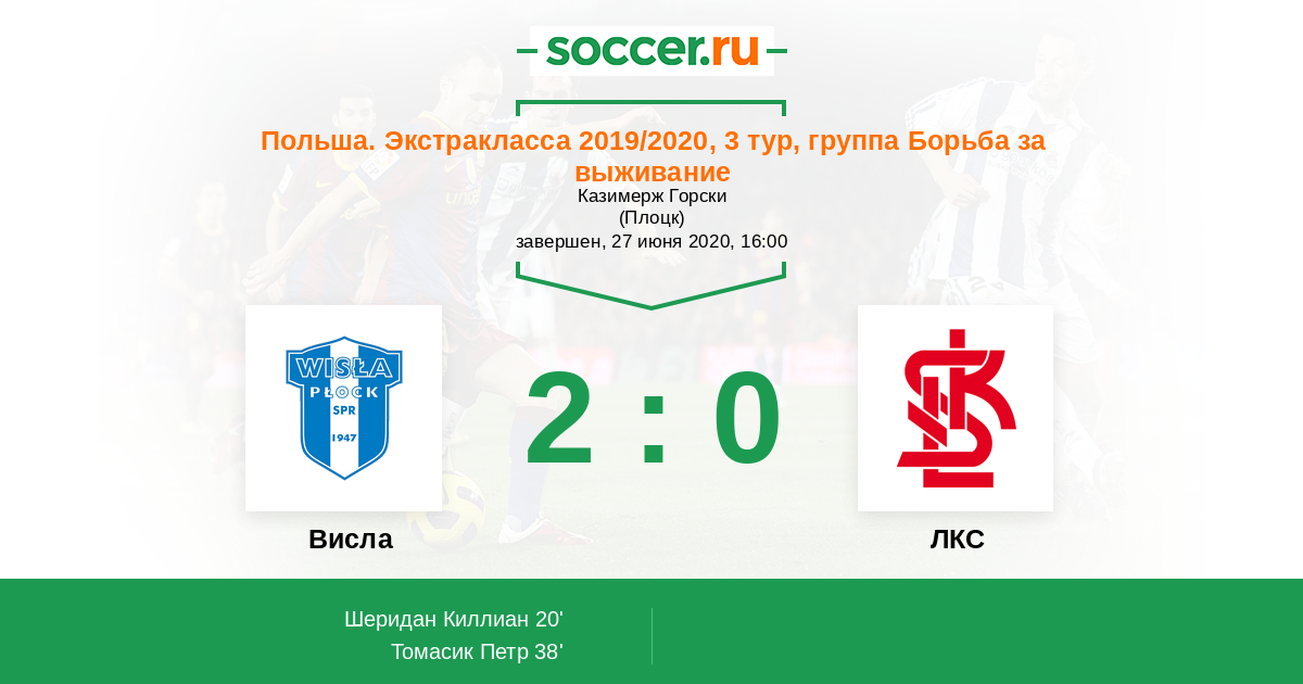 Протокол матча Висла против ЛКС