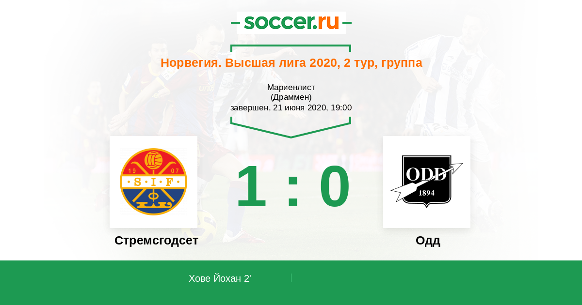 2' (1:0) Хове Йохан (8) (Токстад Кристофер (11))