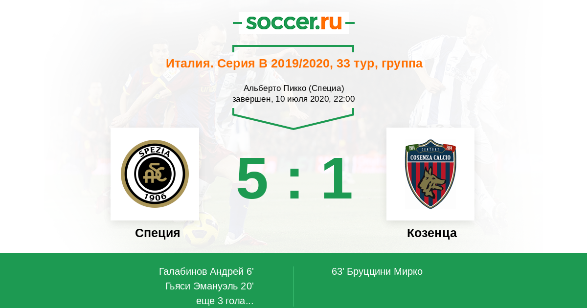 Протокол матча Специя против Козенца