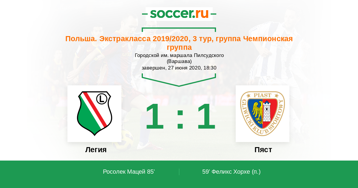 Протокол матча Легия против Пяст