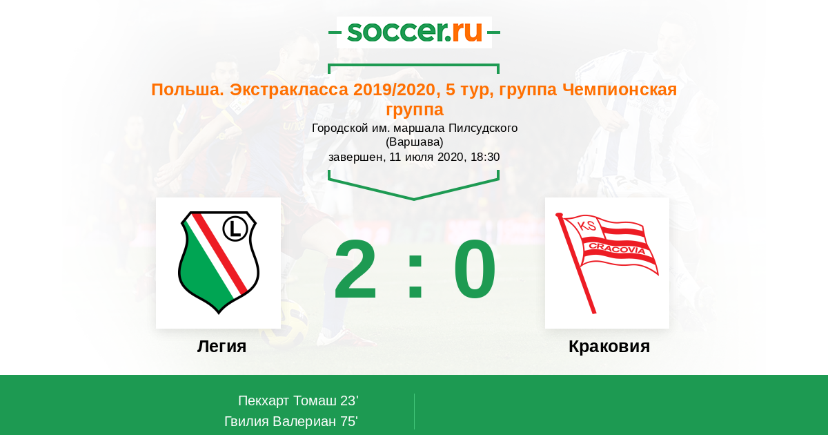 Протокол матча Легия против Краковия