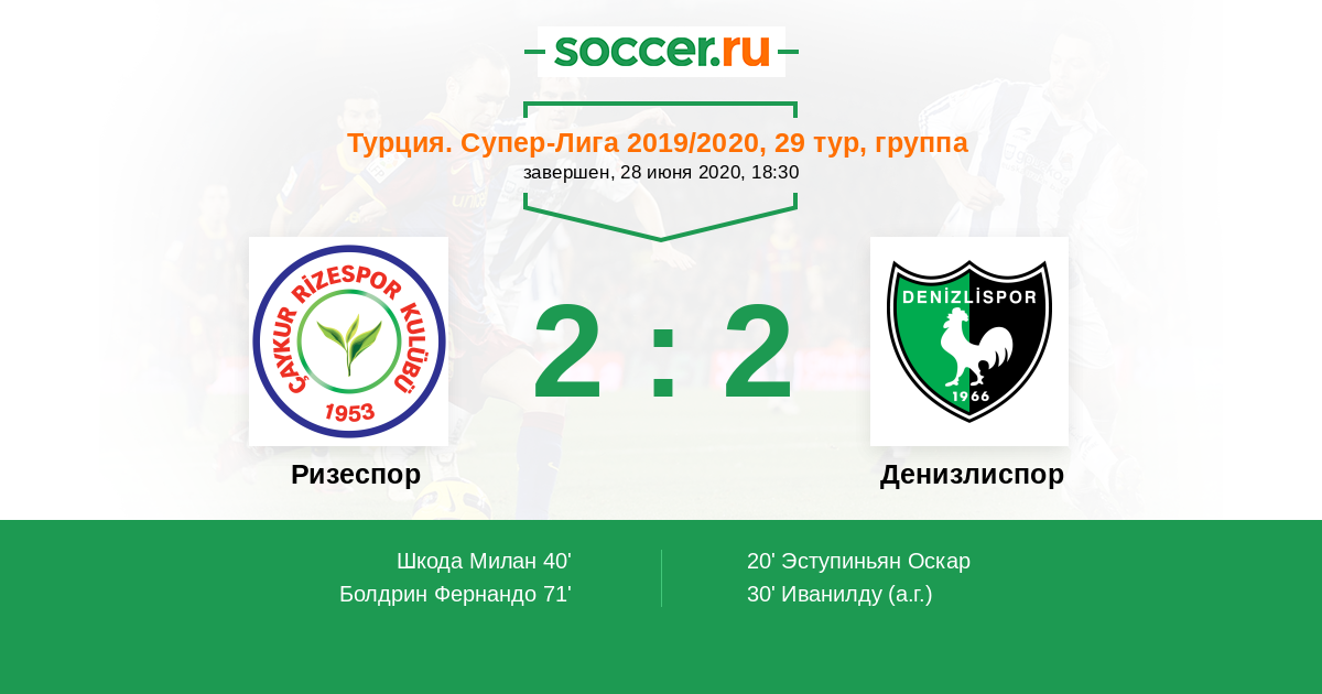 Протокол матча Ризеспор против Денизлиспор