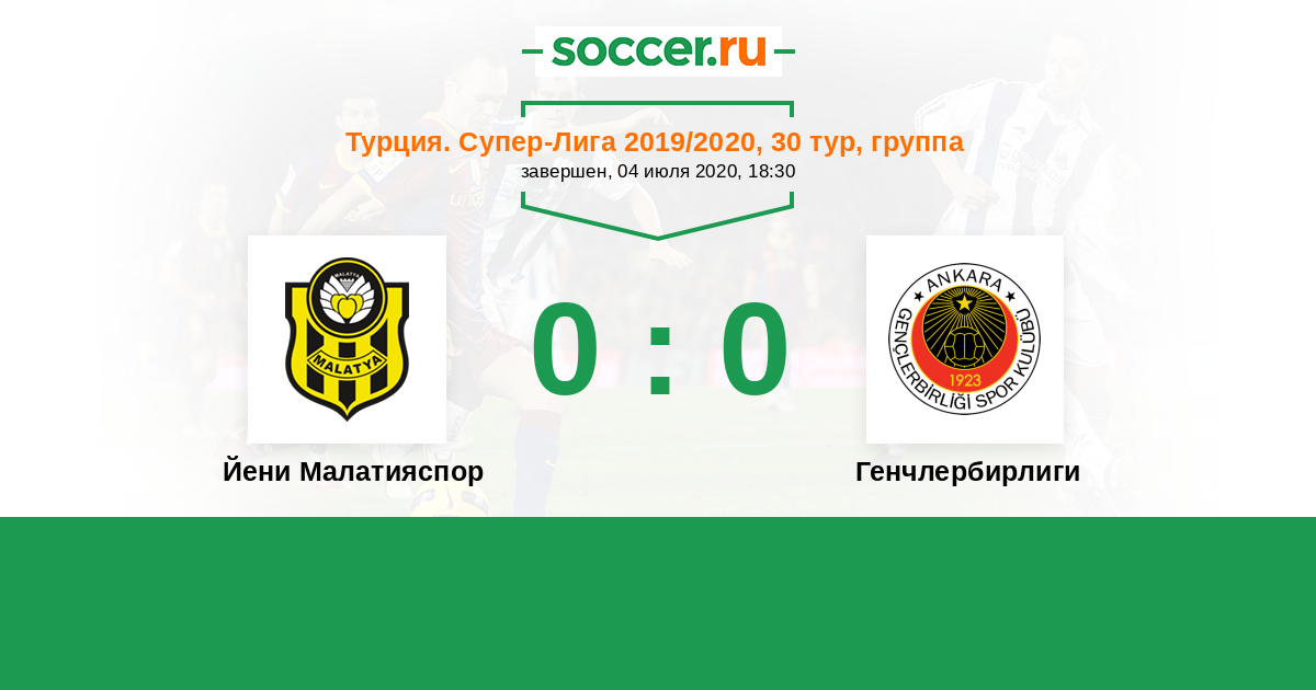 Протокол матча Йени Малатияспор против Генчлербирлиги