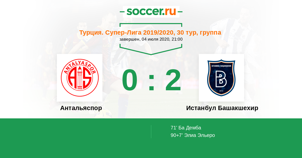 Протокол матча Антальяспор против Истанбул Башакшехир