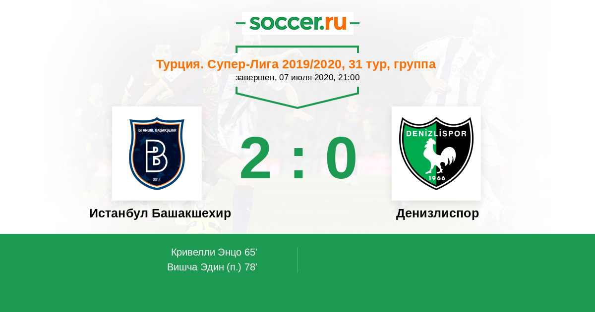Протокол матча Истанбул Башакшехир против Денизлиспор