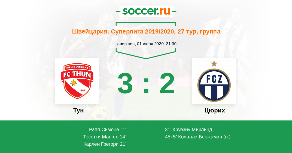 Протокол матча Тун против Цюрих