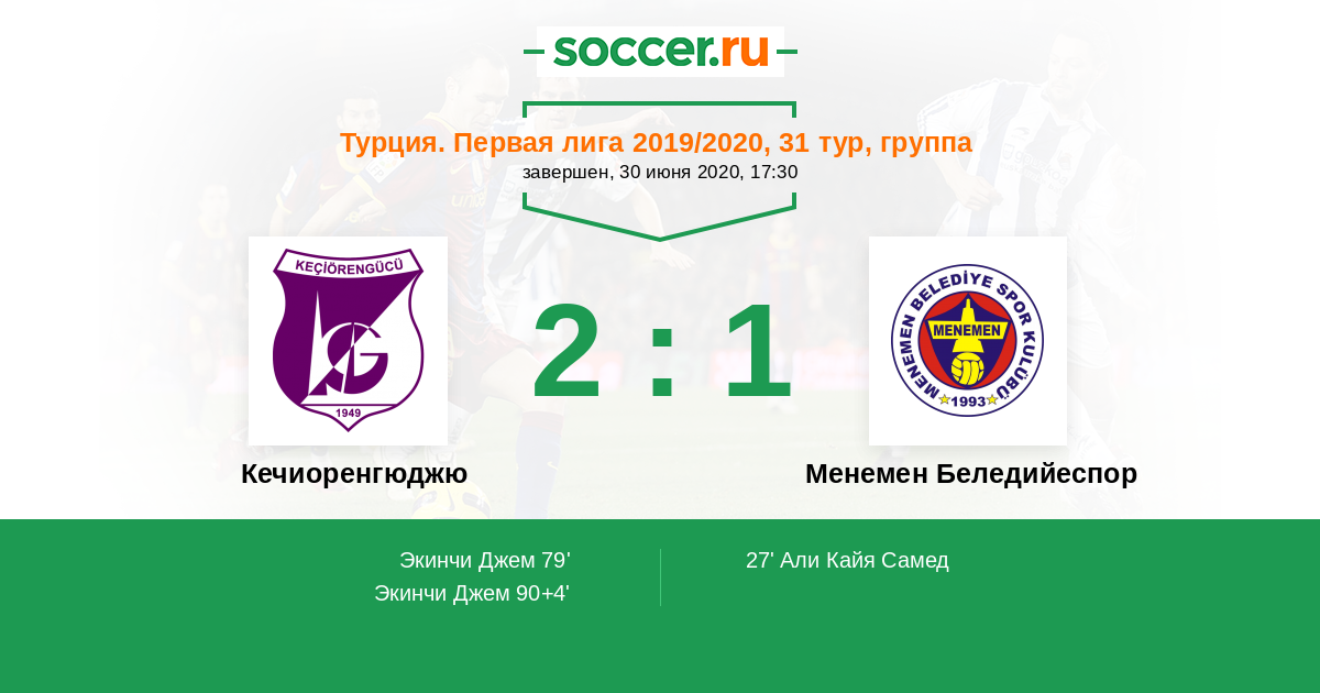 90+4' (2:1) Экинчи Джем (77) (Генул Сонер (28))