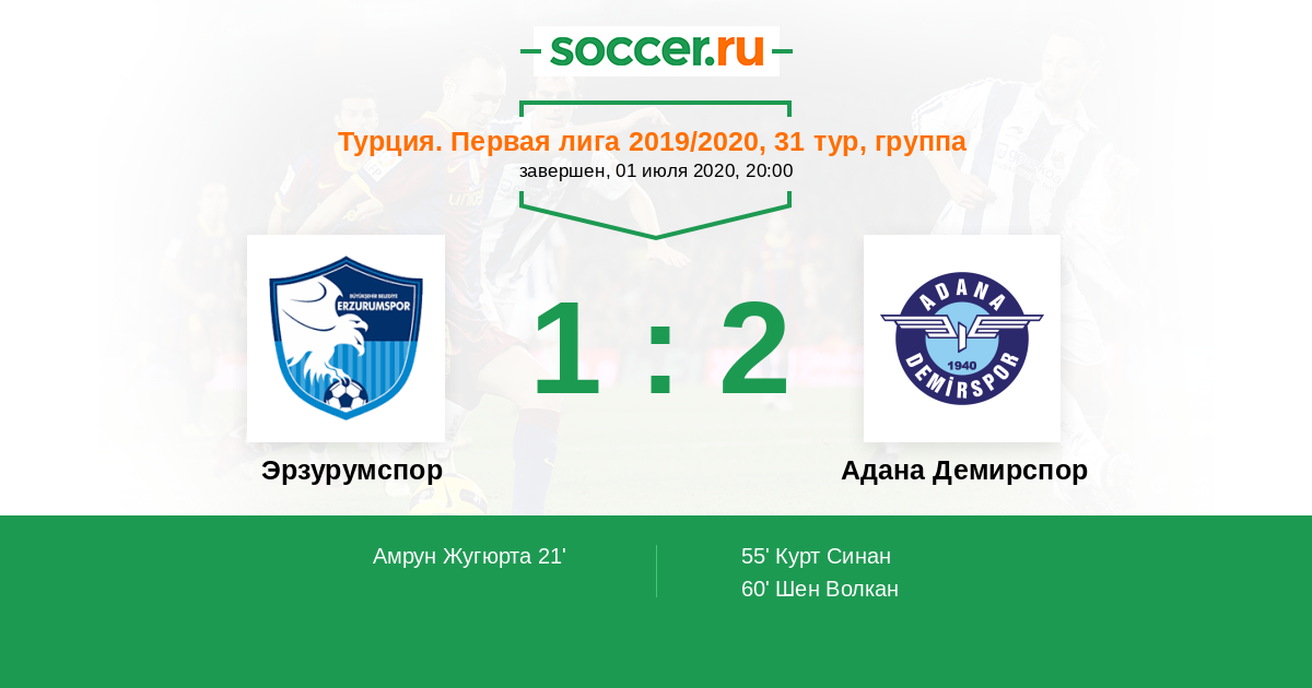 60' (1:2) Шен Волкан (20) (Зенгин Эркан (85))