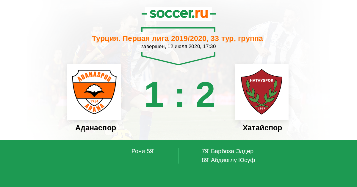 Протокол матча Аданаспор против Хатайспор