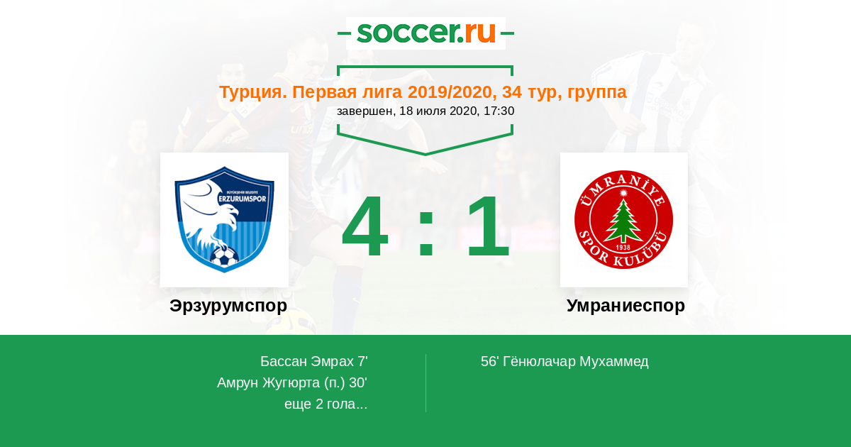 Протокол матча Эрзурумспор против Умраниеспор