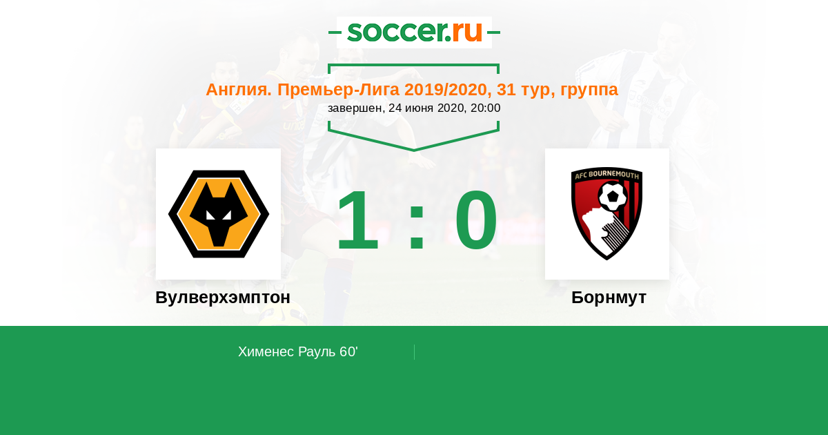 Протокол матча Вулверхэмптон против Борнмут