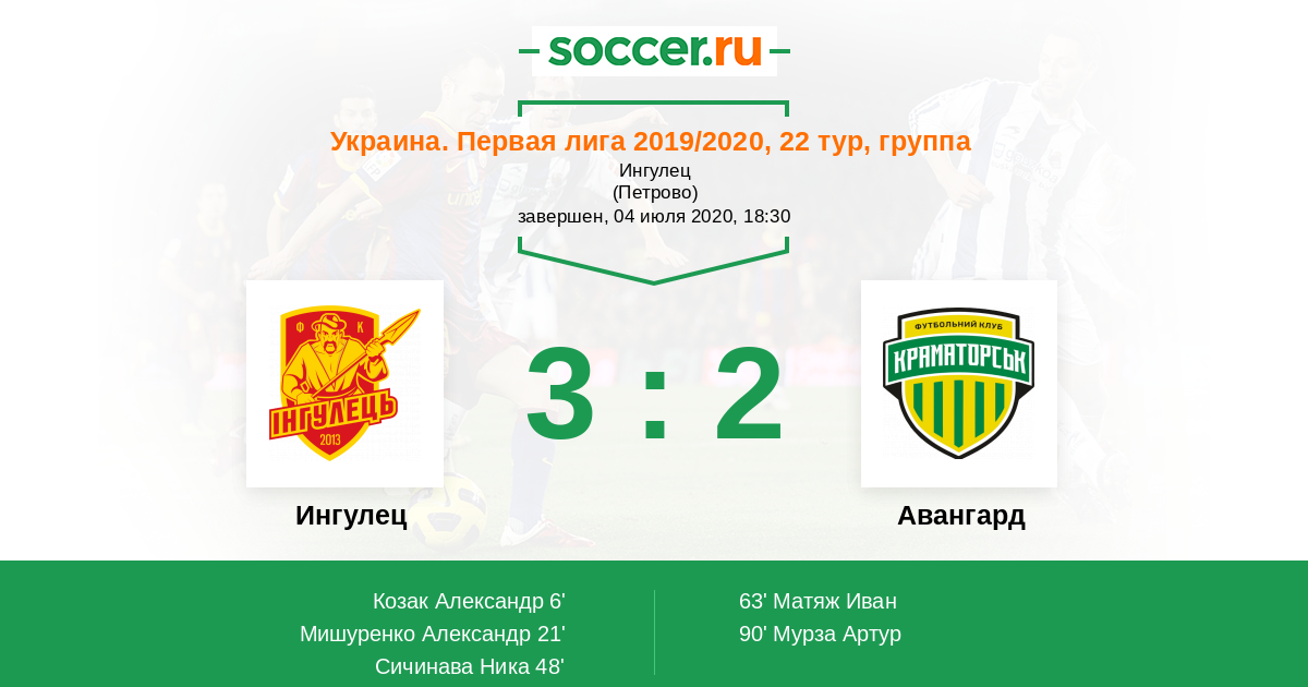 Протокол матча Ингулец против Авангард