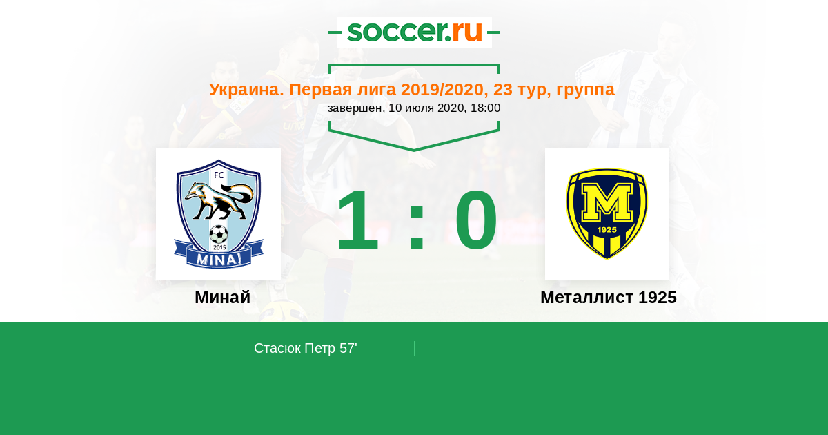 Протокол матча Минай против Металлист 1925