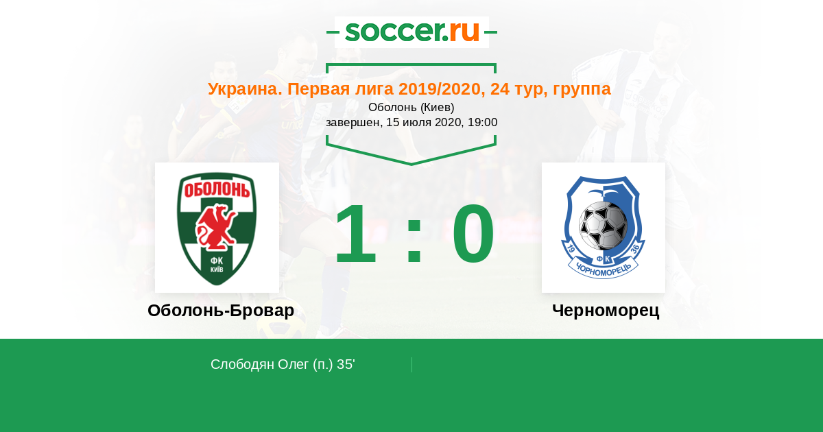 Протокол матча Оболонь-Бровар против Черноморец