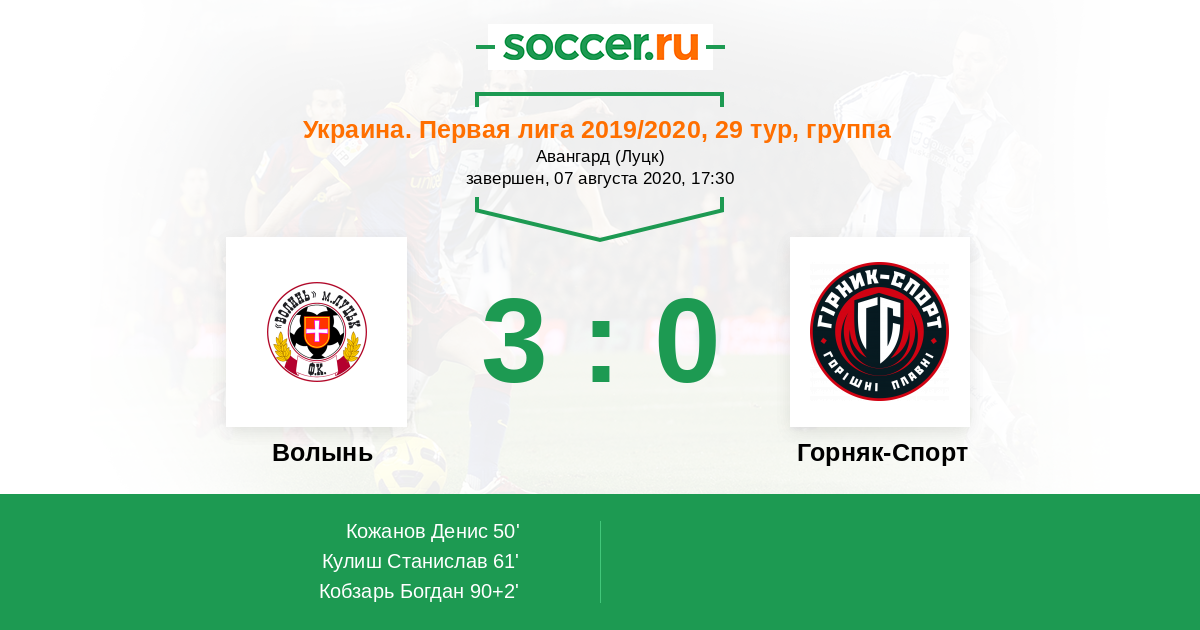 Протокол матча Волынь против Горняк-Спорт