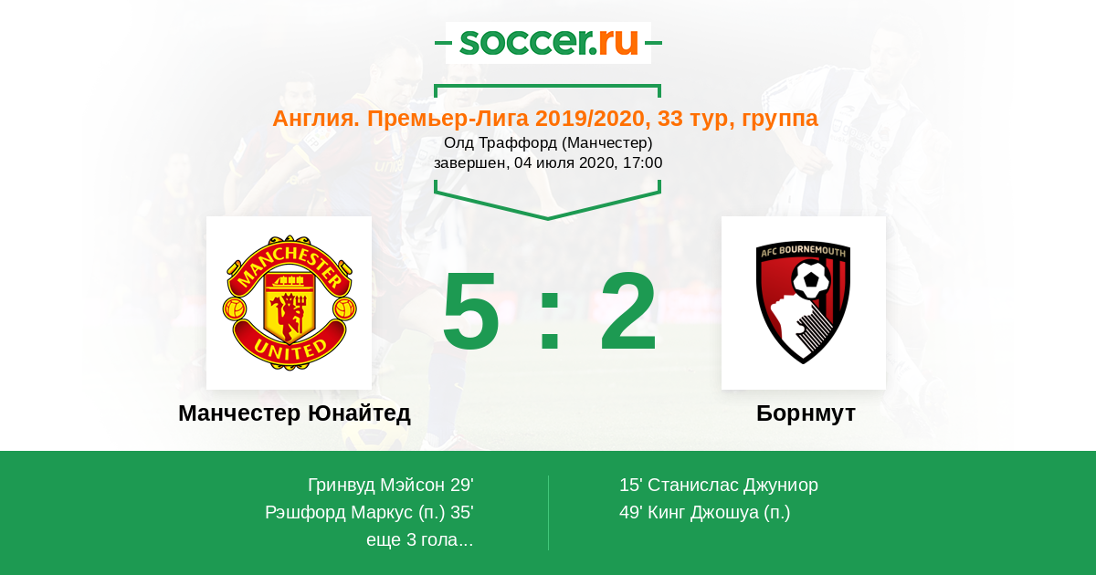 Протокол матча Манчестер Юнайтед против Борнмут