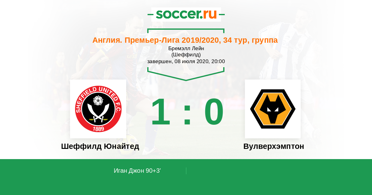 Протокол матча Шеффилд Юнайтед против Вулверхэмптон