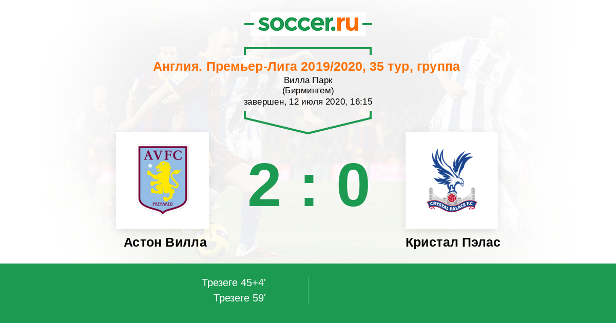 59' (2:0) Трезеге (17) (Хурихейн Конор (14))