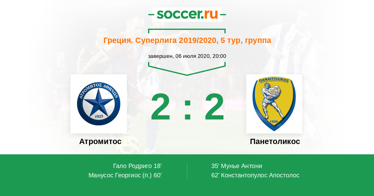 Протокол матча Атромитос против Панетоликос