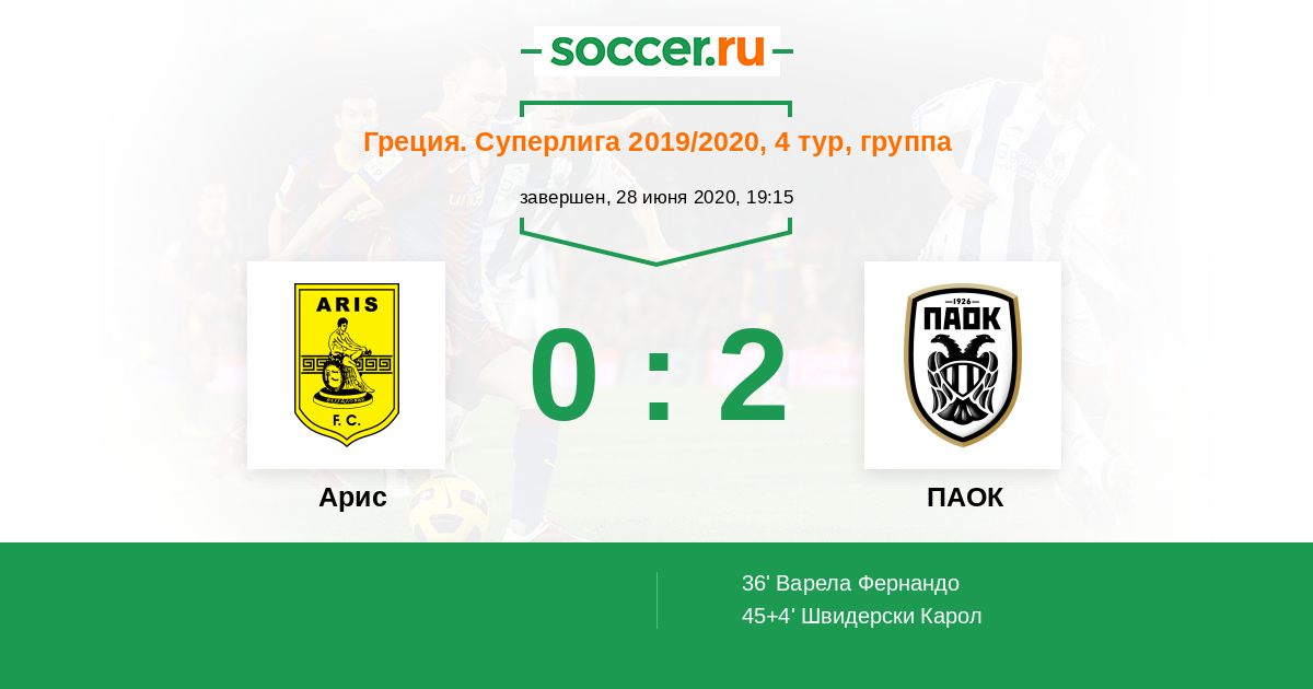 Протокол матча Арис против ПАОК