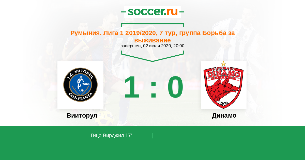 Протокол матча Вииторул против Динамо