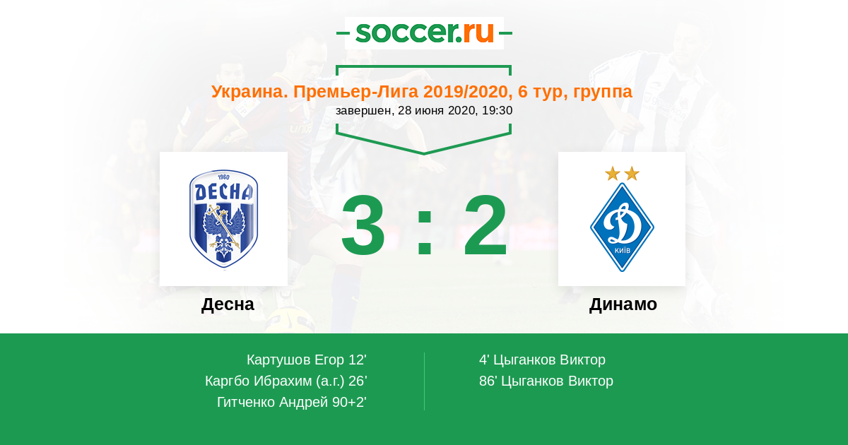 Протокол матча Десна против Динамо