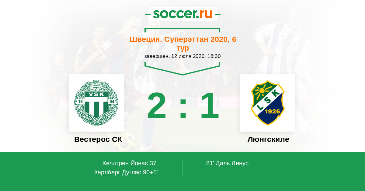 81' (1:1) Даль Линус (20)