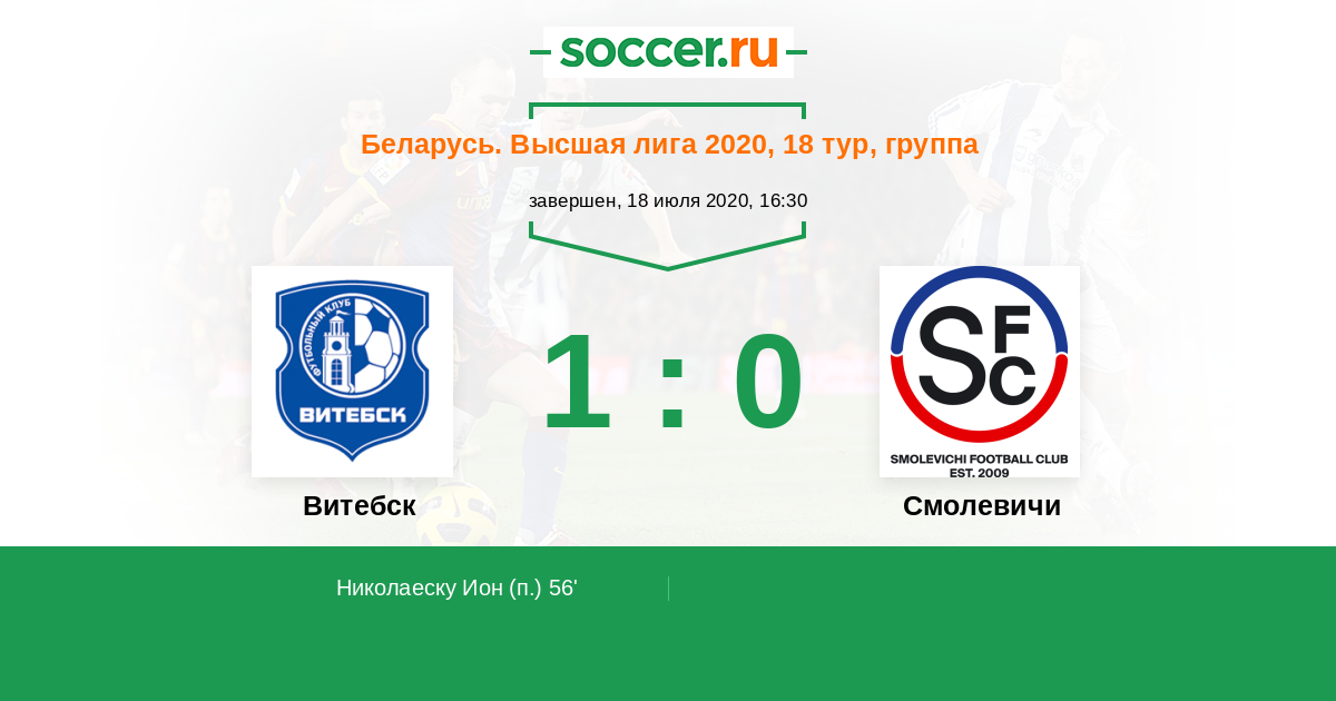 Протокол матча Витебск против Смолевичи