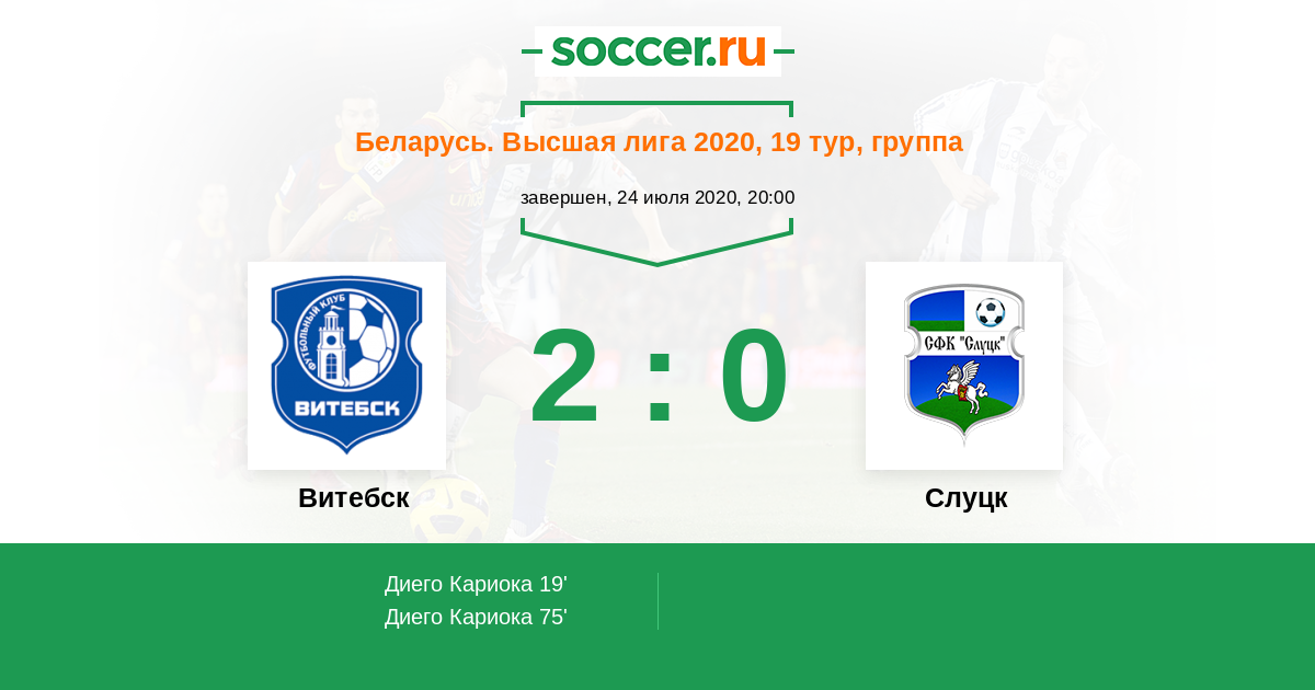 Протокол матча Витебск против Слуцк