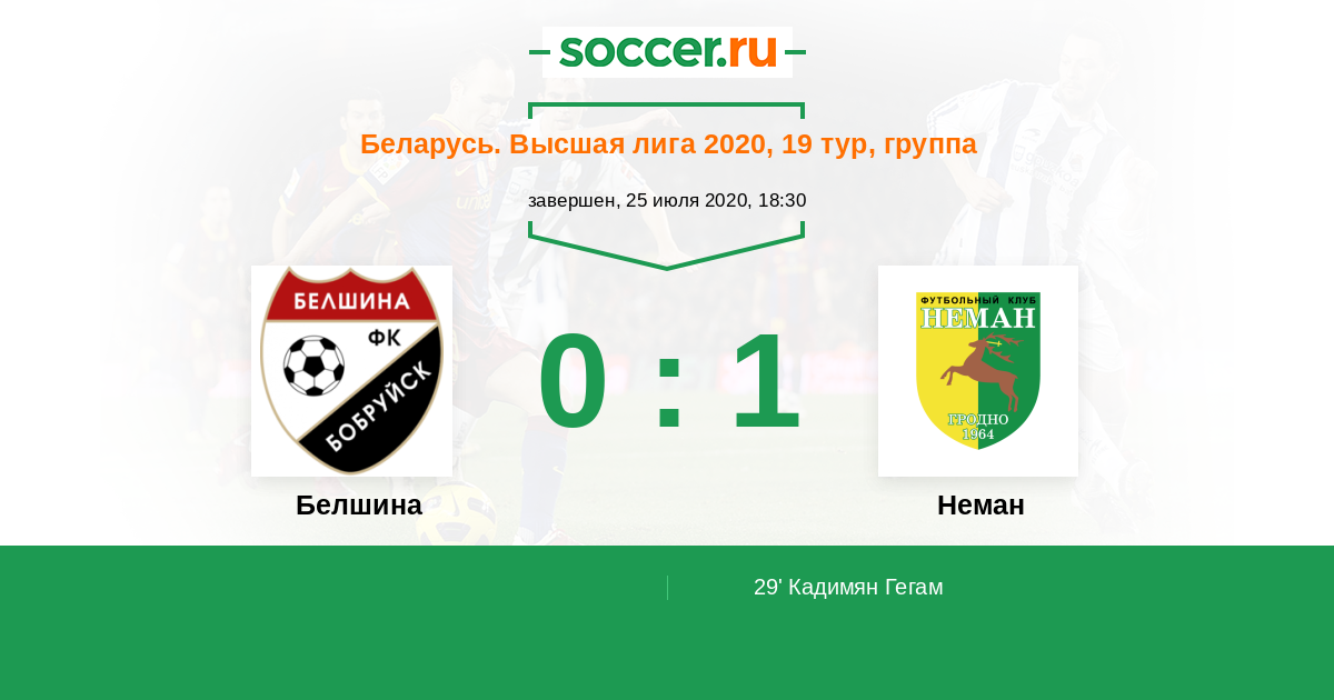 Протокол матча Белшина против Неман