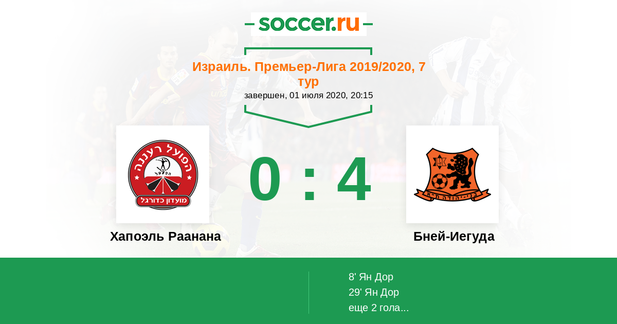 Протокол матча Хапоэль Раанана против Бней-Иегуда