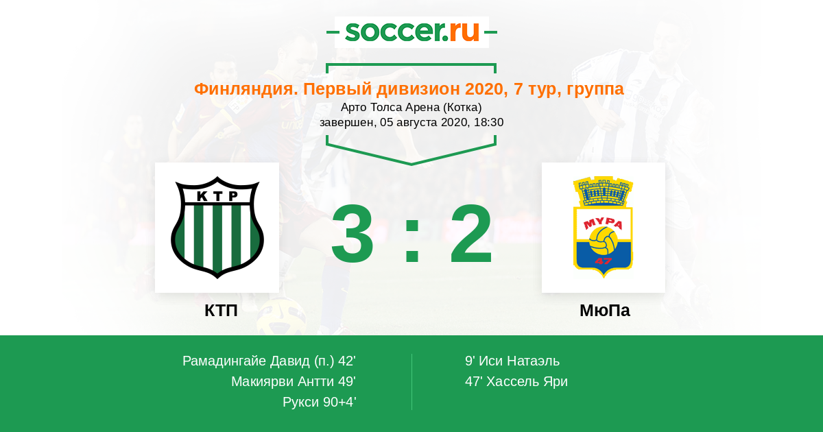 Протокол матча КТП против МюПа