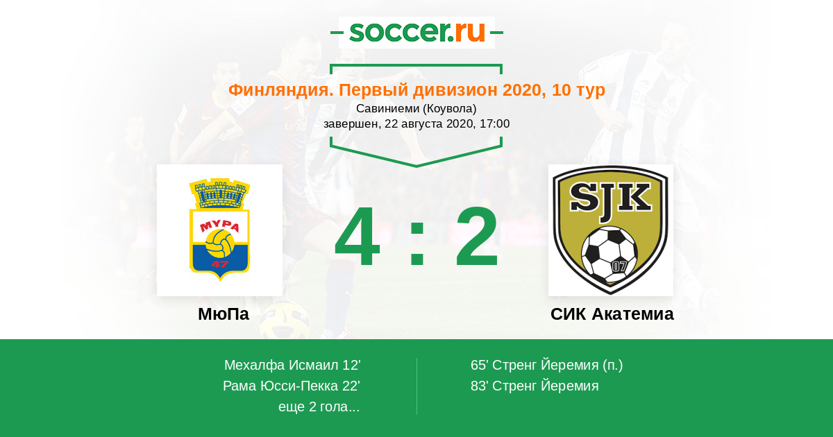 Протокол матча МюПа против СИК Акатемиа