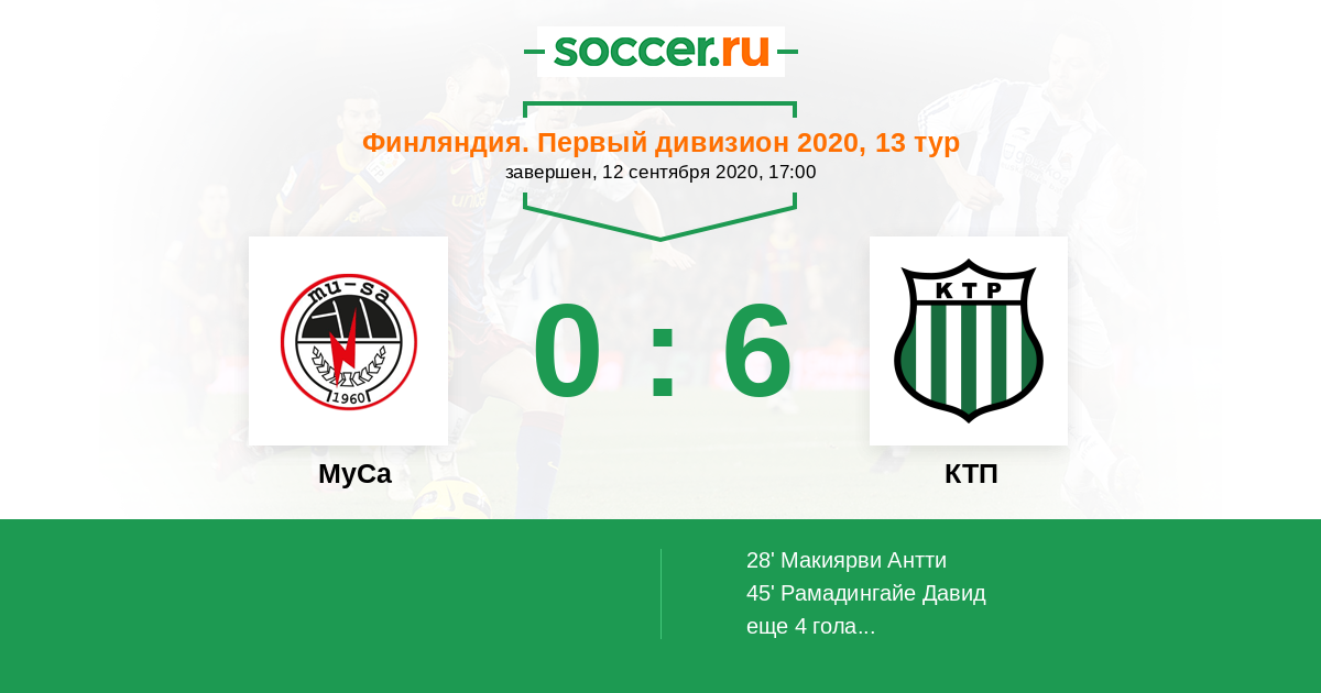 Протокол матча МуСа против КТП