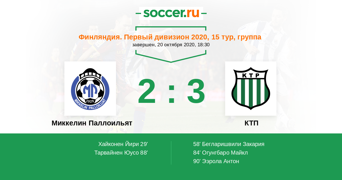 Протокол матча Миккелин Паллоильят против КТП