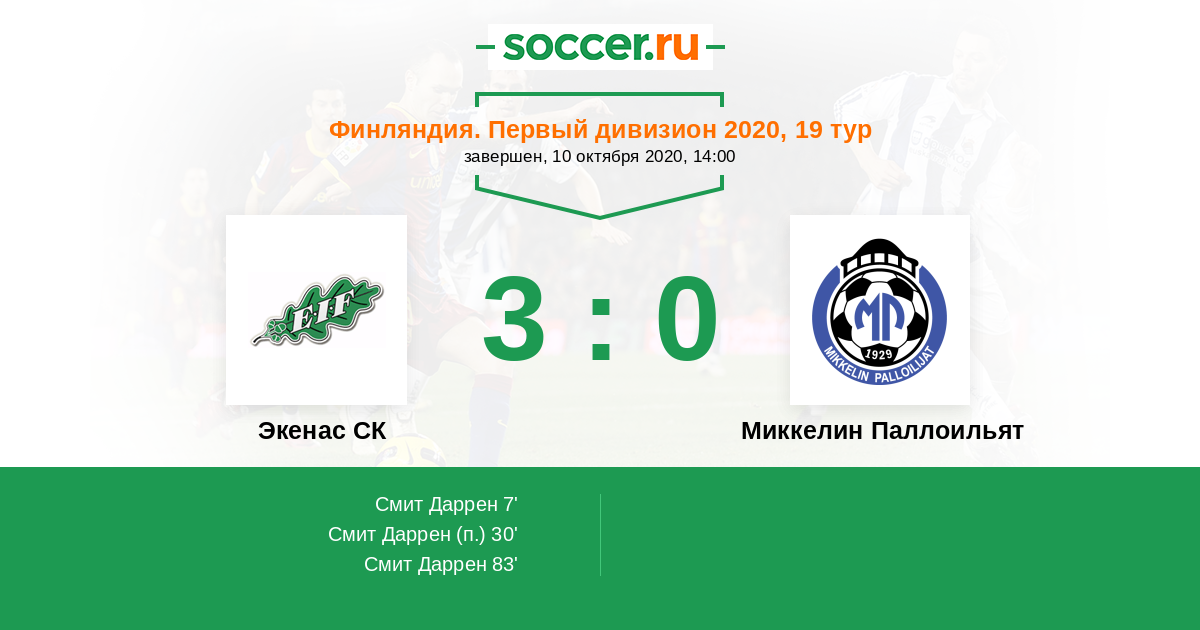 Протокол матча Экенас СК против Миккелин Паллоильят