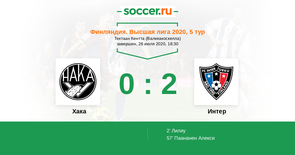 Протокол матча Хака против Интер