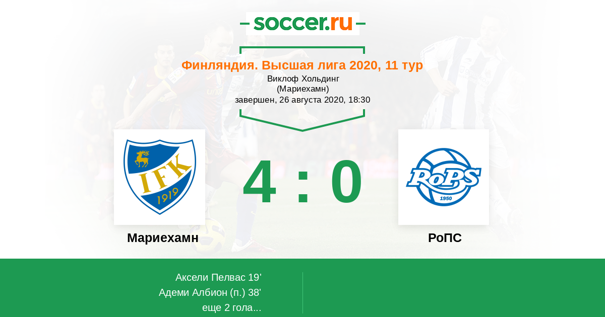 Протокол матча Мариехамн против РоПС