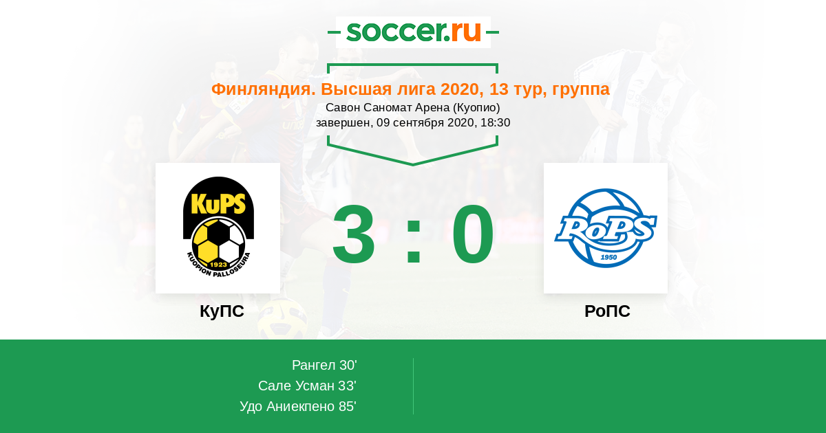 85' (3:0) Удо Аниекпено (13) (Виртанен Отсо (1))