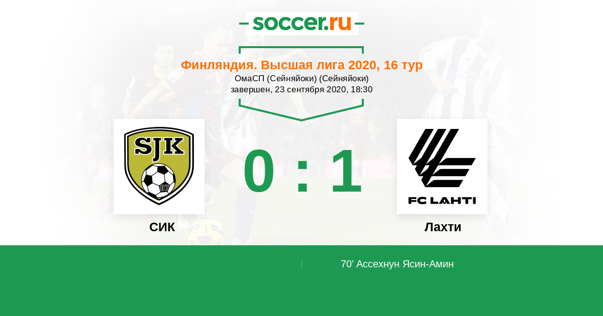 Протокол матча СИК против Лахти