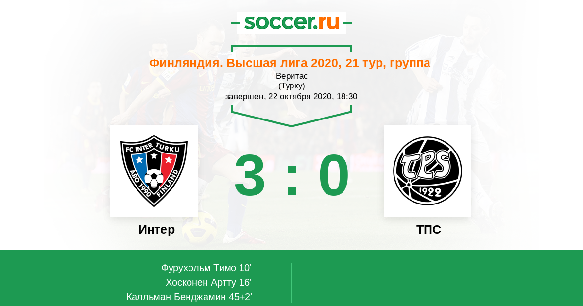 10' (1:0) Фурухольм Тимо (15) (Калльман Бенджамин (10))