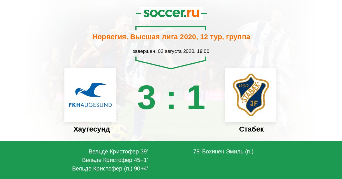 Протокол матча Хаугесунд против Стабек