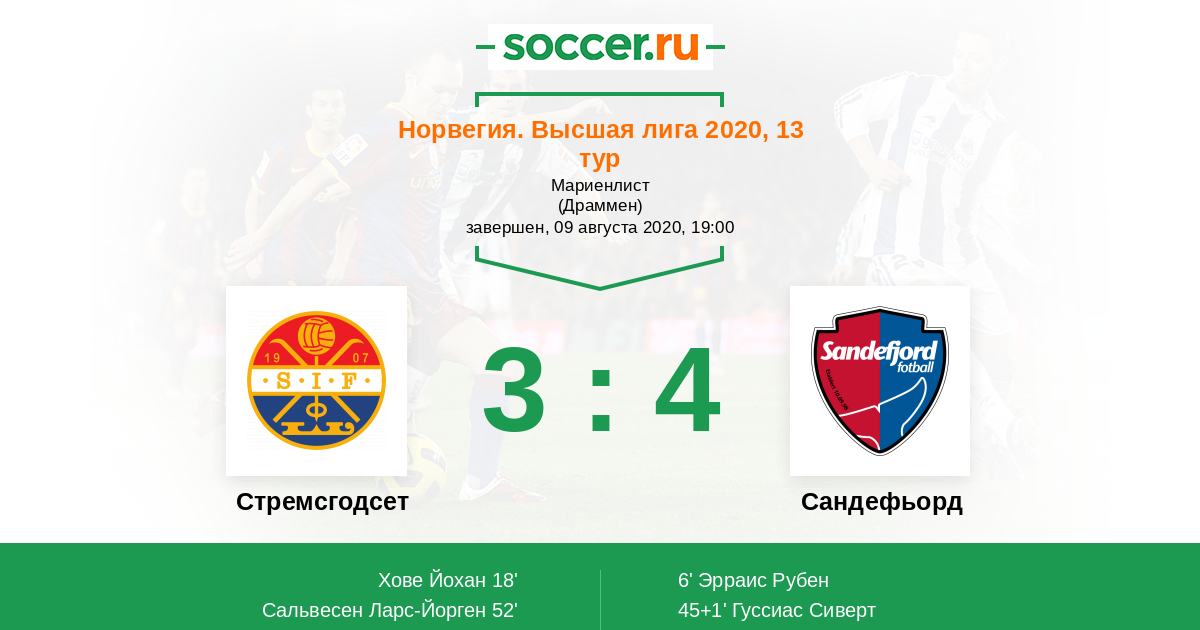 Протокол матча Стремсгодсет против Сандефьорд