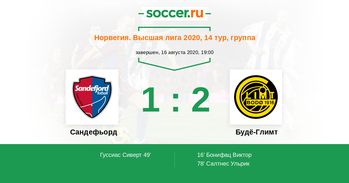 Протокол матча Сандефьорд против Будё-Глимт
