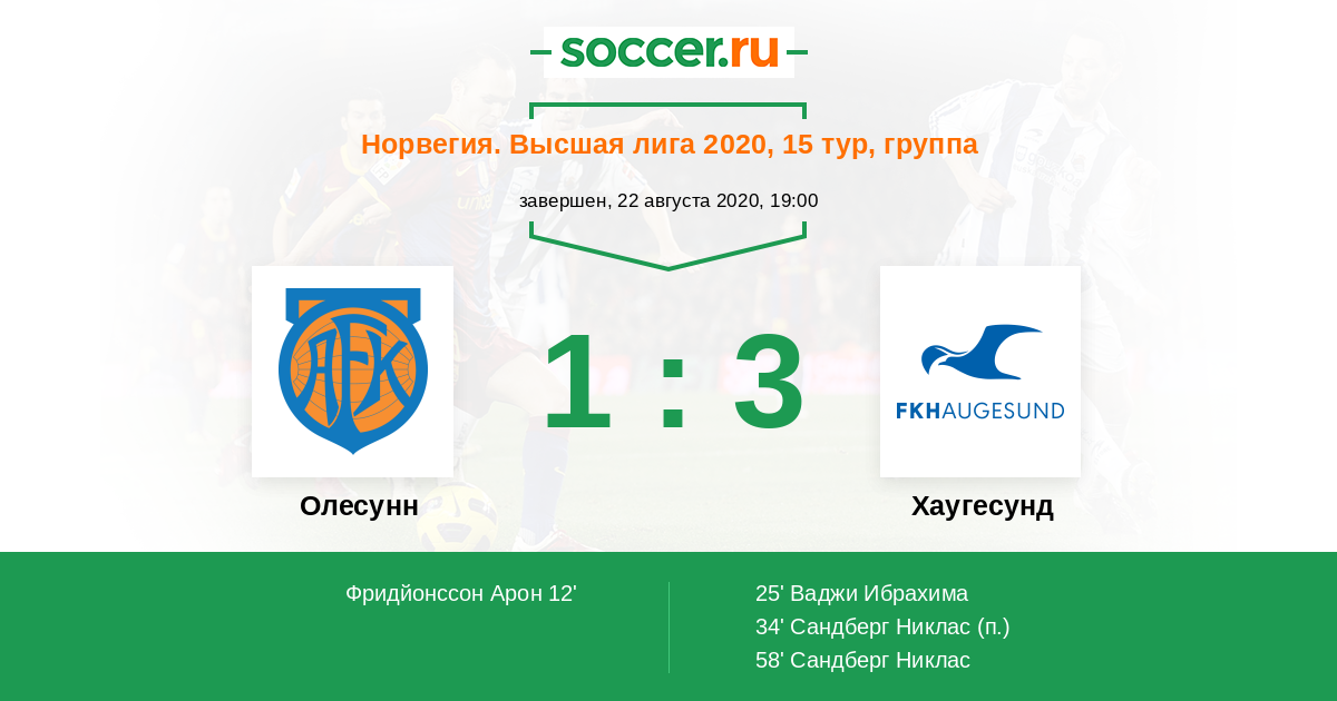 Протокол матча Олесунн против Хаугесунд