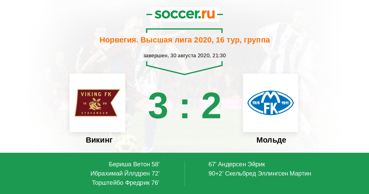 Протокол матча Викинг против Мольде